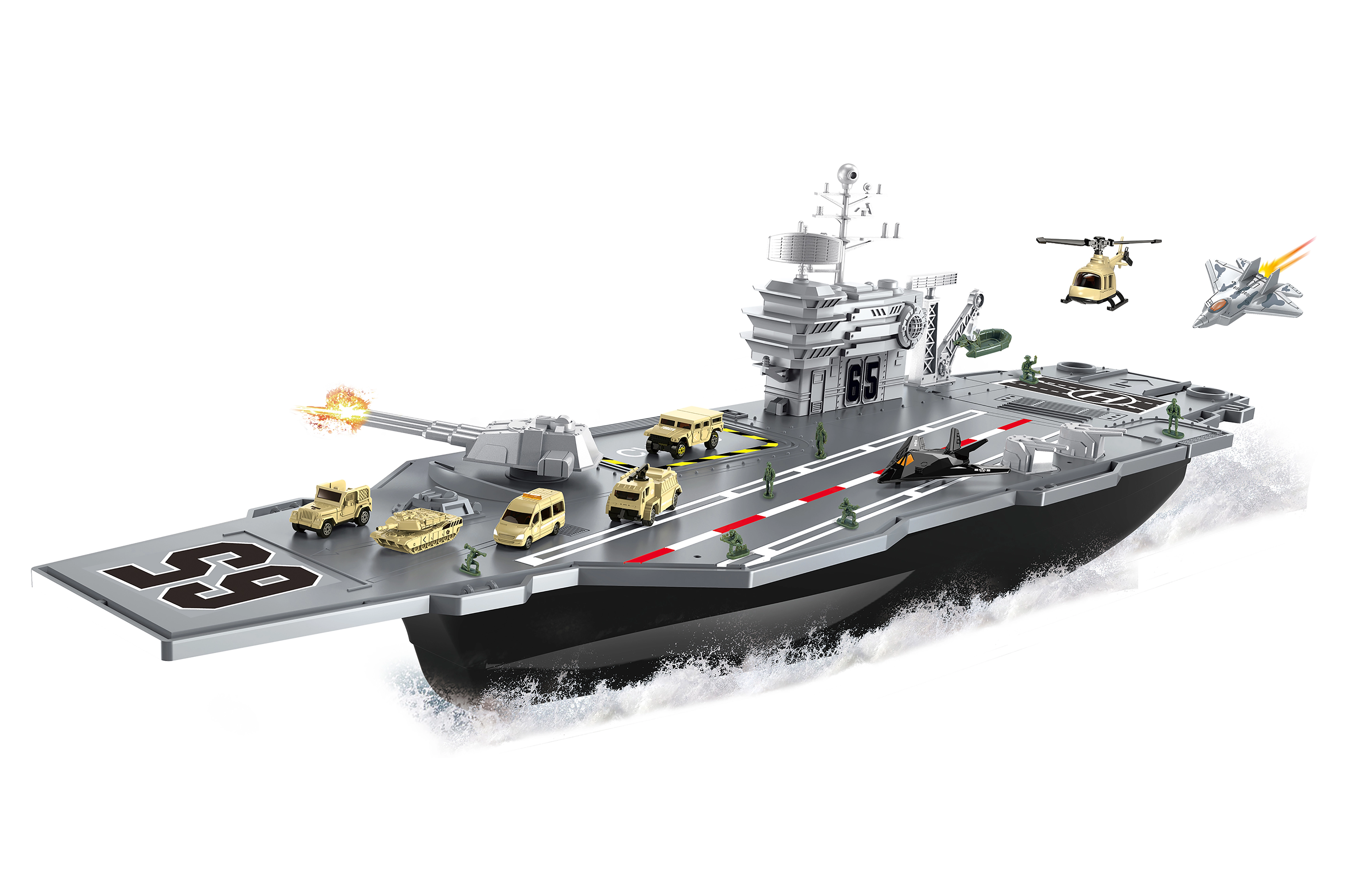 Vliegdekschip met voertuigen en vliegtuigen 86 × 19 × 21 cm