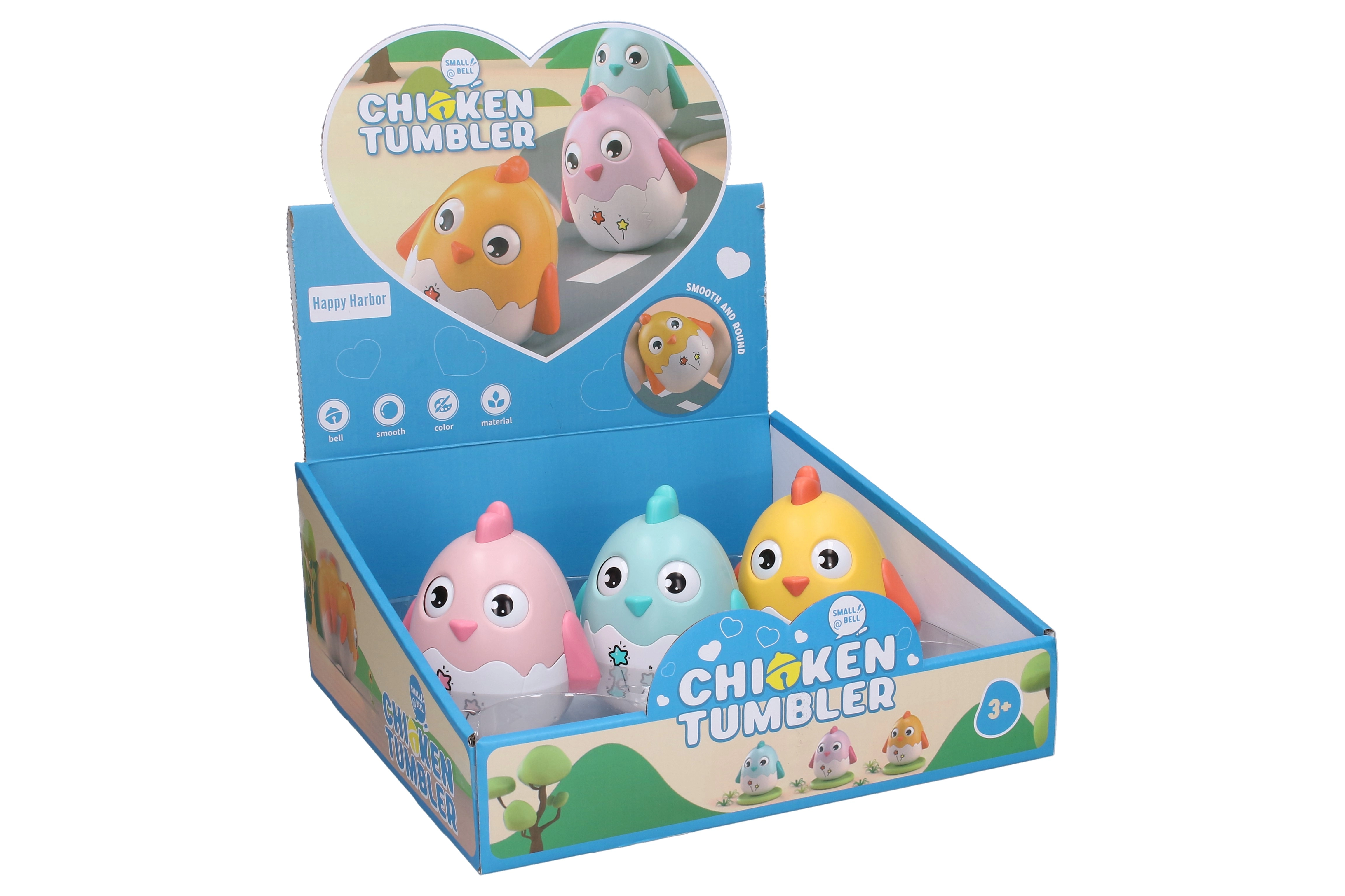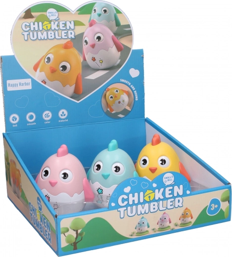 Het wiebelende “roly poly” kuiken is ontworpen om kinderen te stimuleren in hun ontdekking en hun zintuigen te ontwikkelen. Na aanraking wiegt het van links naar rechts en keert het altijd terug naar de rechtopstaande positie, wat de kinderlijke nieuwsgierigheid en fijne motoriek prikkelt. Geïntegreerde belletjes zorgen voor een aangenaam geluid dat de ontwikkeling van het gehoor ondersteunt.
