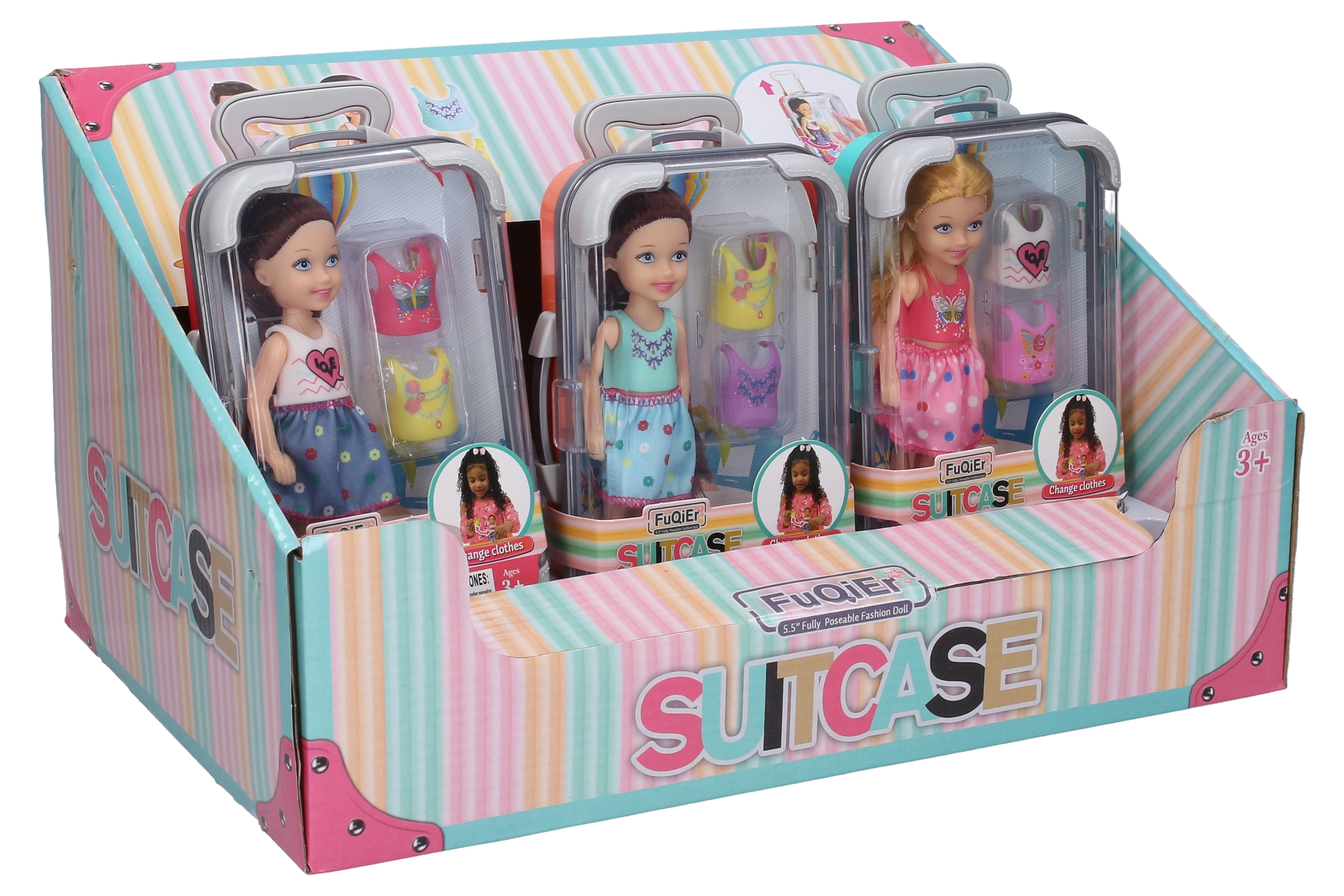 - Compacte afmetingen: pop 14 cm, koffertje 20 cm