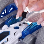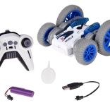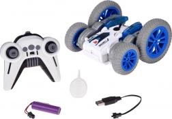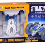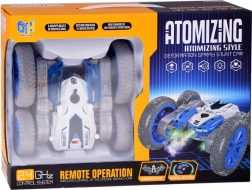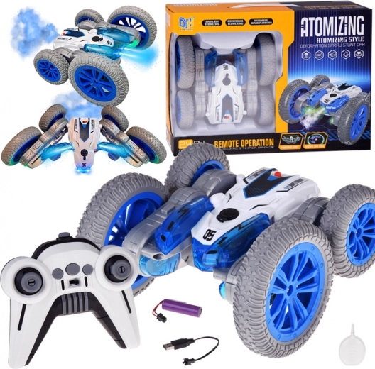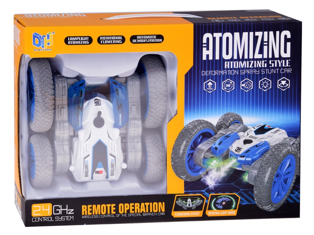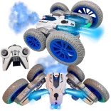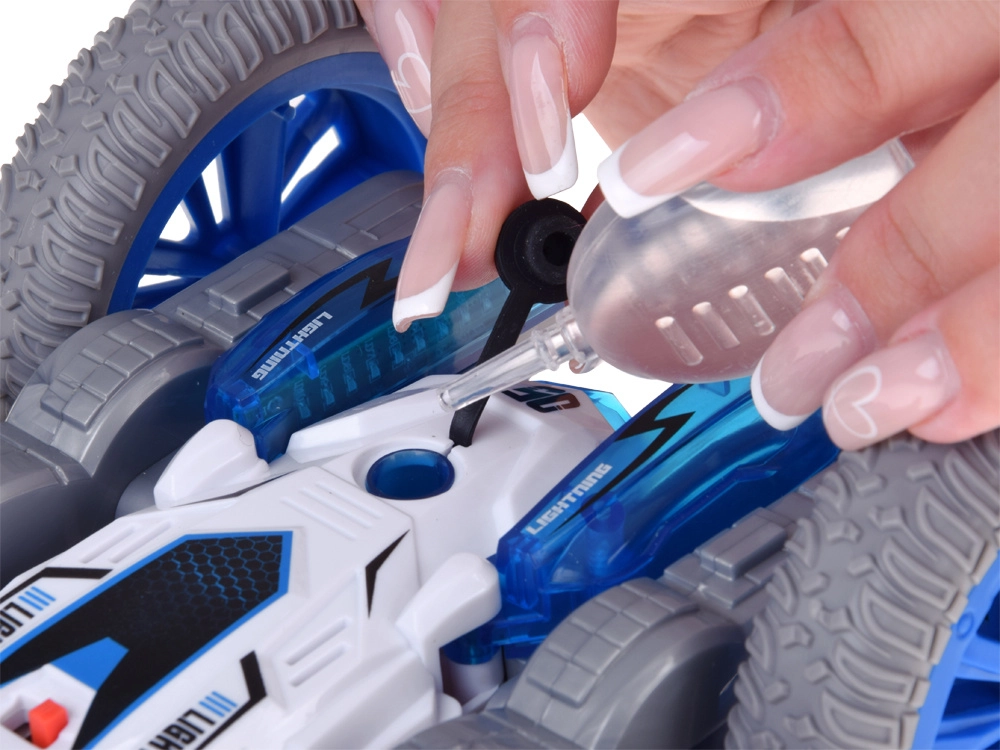 Deze RC stuntauto is gemaakt voor adembenemende ritten binnen en op gladde buitenoppervlakken. Dankzij de grote wielen en wendbare constructie kan hij salto’s maken, op zijn “buik en rug” rijden, snel van richting veranderen en indrukwekkende 360° rotaties uitvoeren. Het effect van verlichte waterdamp en tweekleurige LED’s geeft de rit een spectaculaire look.