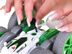 De auto kan rijden op “buik en rug”, salto’s maken en volledige 360° rotaties uitvoeren. Ideaal voor stunts op vloeren en tapijten.