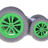 Grote, met rubber beklede wielen met een grof profiel bieden zekerheid in bochten, stabiliteit bij snelheid en zijn vriendelijk voor oppervlakken.
