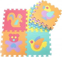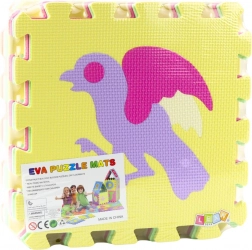 De EVA-schuim puzzel-speelmat bestaat uit 9 grote tegels (30,5 × 30,5 cm) in levendige kleuren. Uitneembare inzetstukken in de vorm van dieren (bijv. vogeltje, beer, haan) zorgen voor leuk leren en ondersteunen de oog-handcoördinatie. Het getextureerde, antislip oppervlak voelt prettig aan en het zachte schuim dempt valpartijen en geluid.