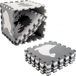 De contrasterende puzzelmat is ideaal voor de speelhoek thuis en de kinderkamer. De grote stukken van 30,5 × 30,5 cm klikken eenvoudig in elkaar en vormen een stabiel, zacht en thermisch isolerend oppervlak dat zowel knieën als de vloer beschermt. Uitneembare dinosaurus-inzetstukken stimuleren het leren van vormen, ontwikkelen logica en visuele waarneming dankzij de contrasterende kleuren.