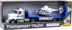 Deze politietransportwagen vormt een complete mobiele basis voor patrouilles, interventies en reddingsacties. De grote trekker met oplegger vervoert veilig de compacte helikopter, die dankzij de draaiende rotorbladen eenvoudig kan “starten” en “landen” in kinderscenario’s.