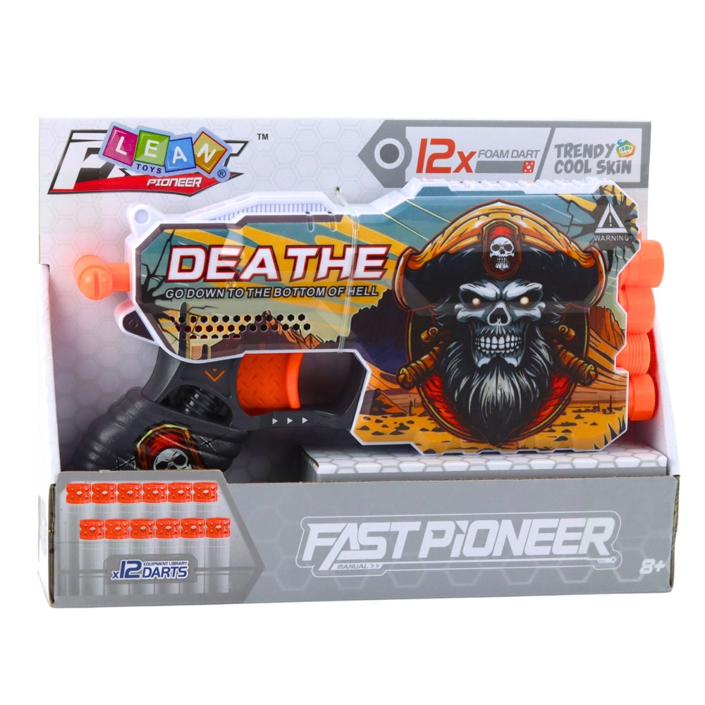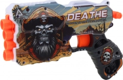 Ontdek actievol plezier met het piratenspistool voor foam pijltjes, dat veiligheid, eenvoudige bediening en een aantrekkelijk uiterlijk combineert. Dankzij de compacte afmetingen ligt het uitstekend in kinderhanden en is het ideaal voor plezier in de tuin en in de kinderkamer.