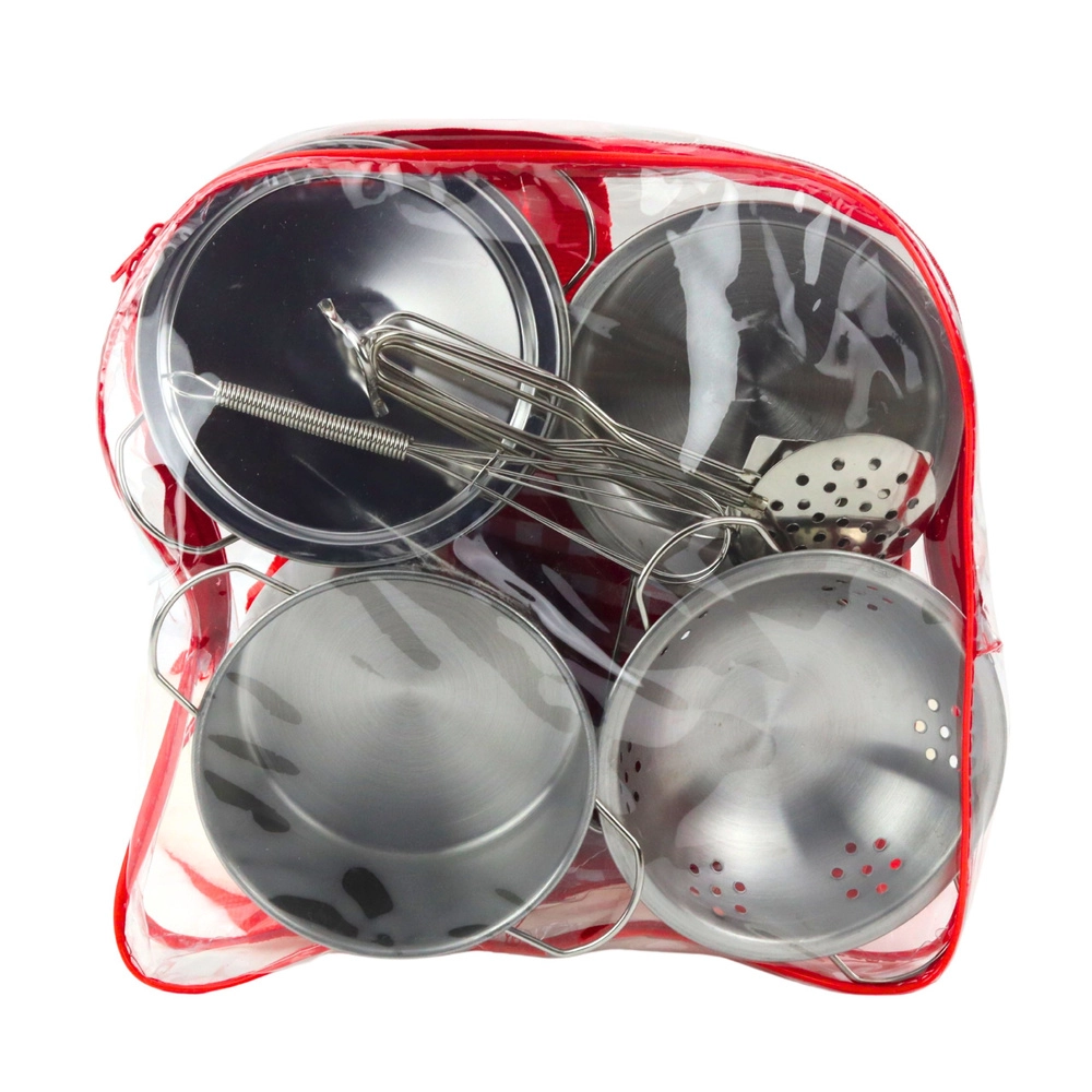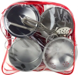 Metalen keukenset voor kinderen in een transparante rugzak, 12 stuks