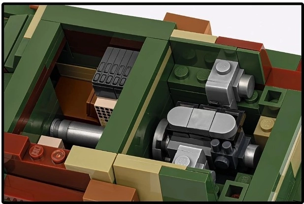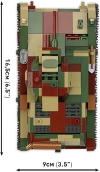 Dankzij de draaibare koepel, het verstelbare kanon en de beweegbare rupsbanden kun je het model in verschillende gevechtshoudingen presenteren. Verder inbegrepen zijn een uitneembare motor, een wit verzamelplaatje met naam en schaal, en een commandantsminifiguur met accessoires. Alle grafische details zijn uitgevoerd met blijvende prints – geen stickers.
