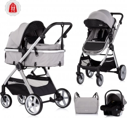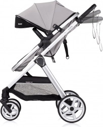 CHIPOLINO Vista Cloud Grey is een praktische 2-in-1 kinderwagen die reiswieg en sportzitting in één oplossing combineert. Dankzij de slimme constructie verander je de zitunit eenvoudig in een reiswieg voor pasgeborenen en weer terug, met de mogelijkheid tot montage met of tegen de rijrichting in. Het lichte aluminium frame met geanodiseerd effect en vering op alle wielen zorgen voor een comfortabele en stabiele rit in de stad en in het park.
