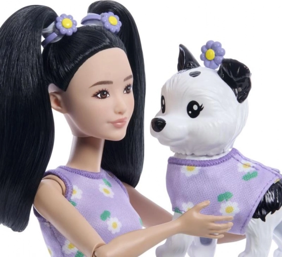 Deze betoverende BARBIE-set met hondje biedt de perfecte mix van mode en fantasie. De pop in een lavendelkleurige bloemenoutfit en haar huisdiertje in een bijpassend vestje zijn klaar voor dagelijkse avonturen. Dankzij de rijke selectie accessoires kunnen kinderen nieuwe verhalen bedenken en hun verbeelding ontwikkelen.