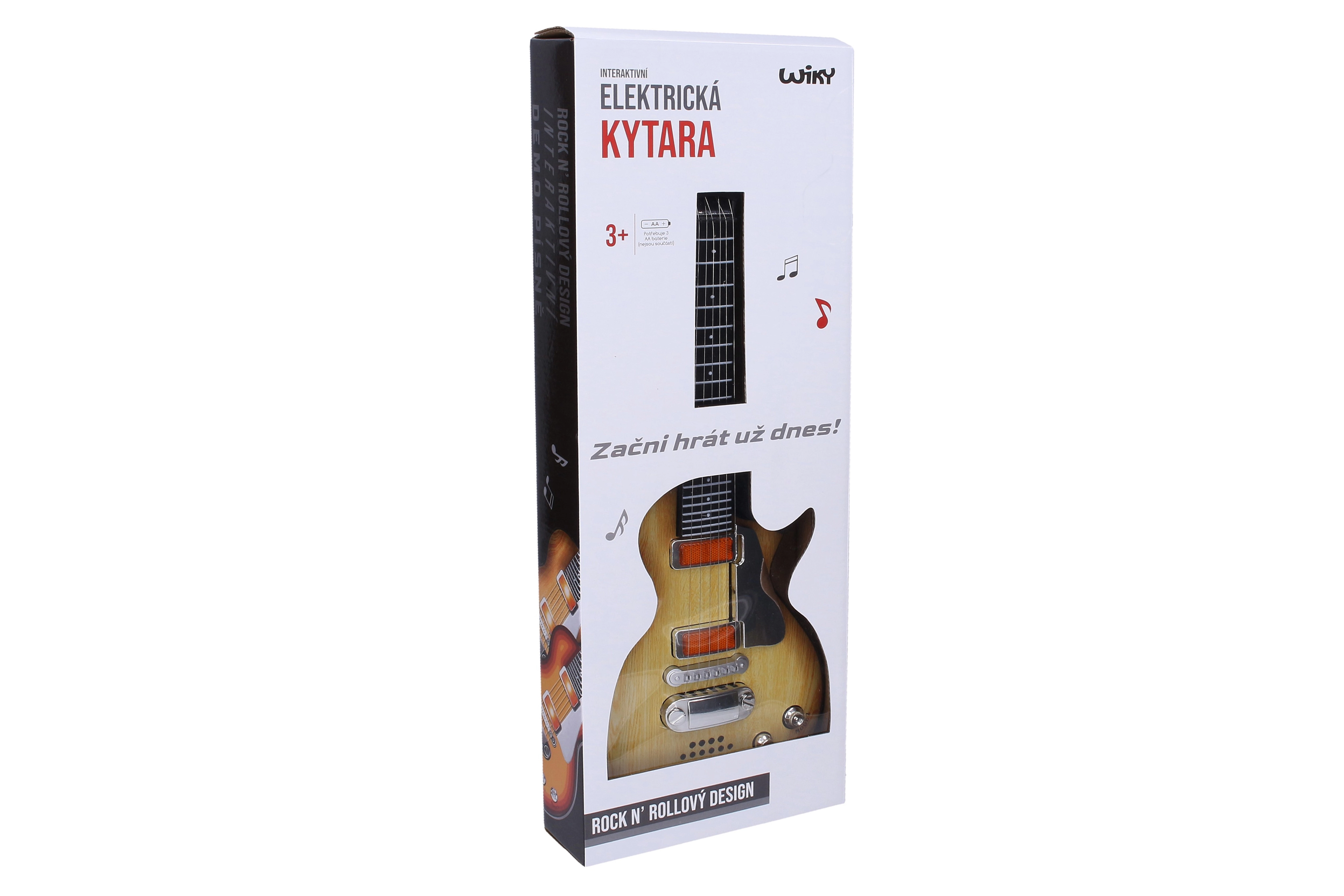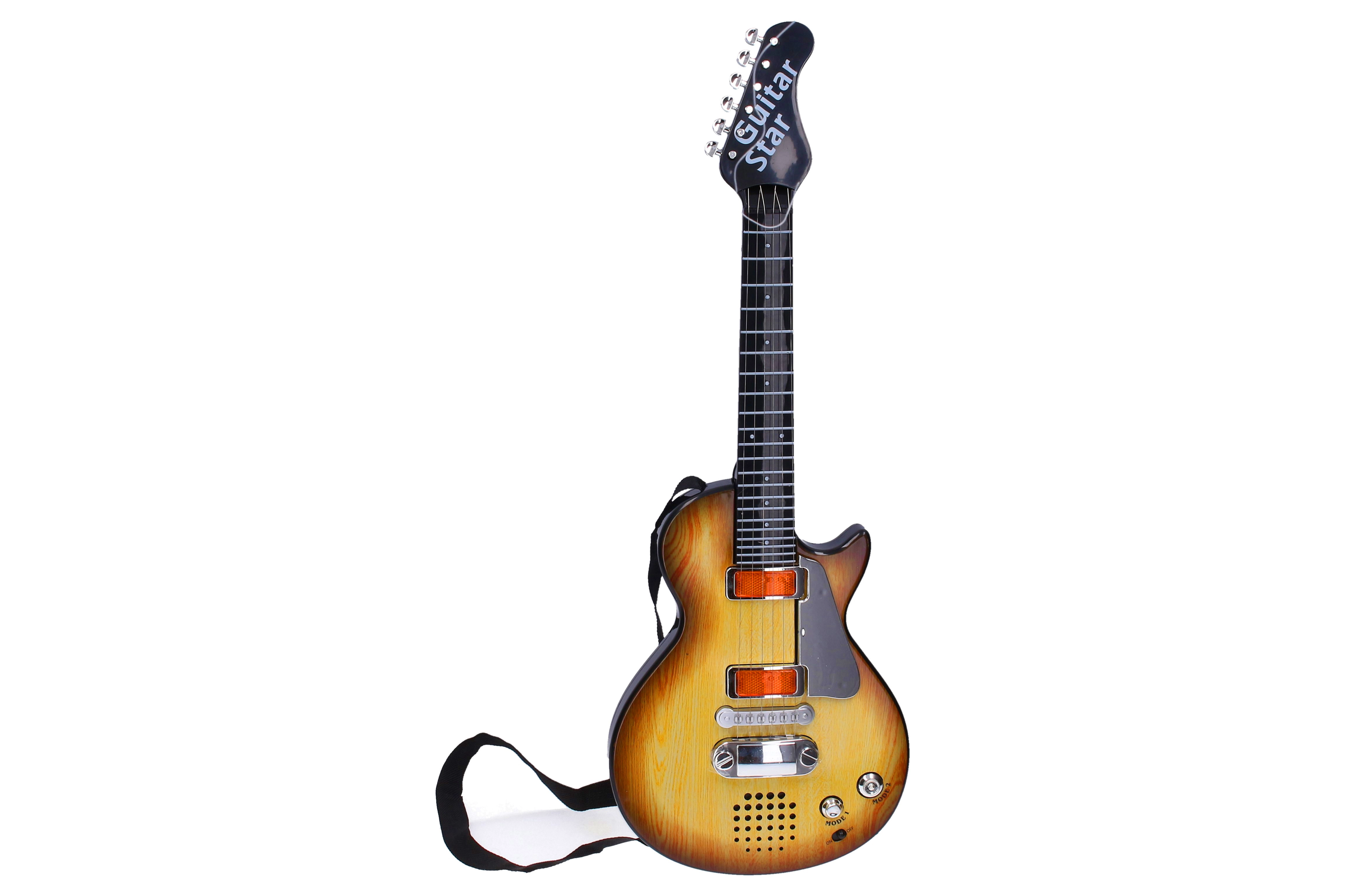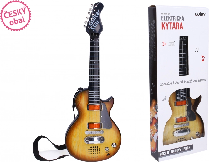 Ontdek de leuke elektrische kindergitaar met effecten met een lengte van 55 cm, ideaal voor kleine muzikanten. Biedt aantrekkelijke licht- en geluidseffecten, eenvoudige bediening en een Tsjechische verpakking voor comfortabel gebruik. Microfoon niet inbegrepen en voor gebruik zijn 3× AA-batterijen nodig (niet inbegrepen).