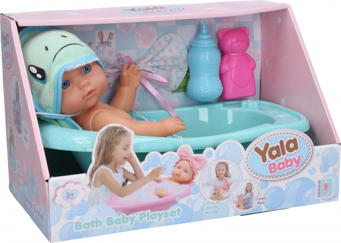 Schattige plaspop met badje 30 cm en accessoires. Realistisch spel, badset en badjas voor het stimuleren van fantasie en verzorging. Geweldig cadeau voor kinderen.