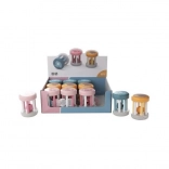 De houten rammelaar is ontworpen voor kleine ontdekkers. Hij valt op door het zachte gerammel, vriendelijk voor kinderoren, en de lieve illustraties van diertjes. Pasteltinten en goed afgewerkt hout nodigen uit tot ontdekken, vastpakken en rollen.