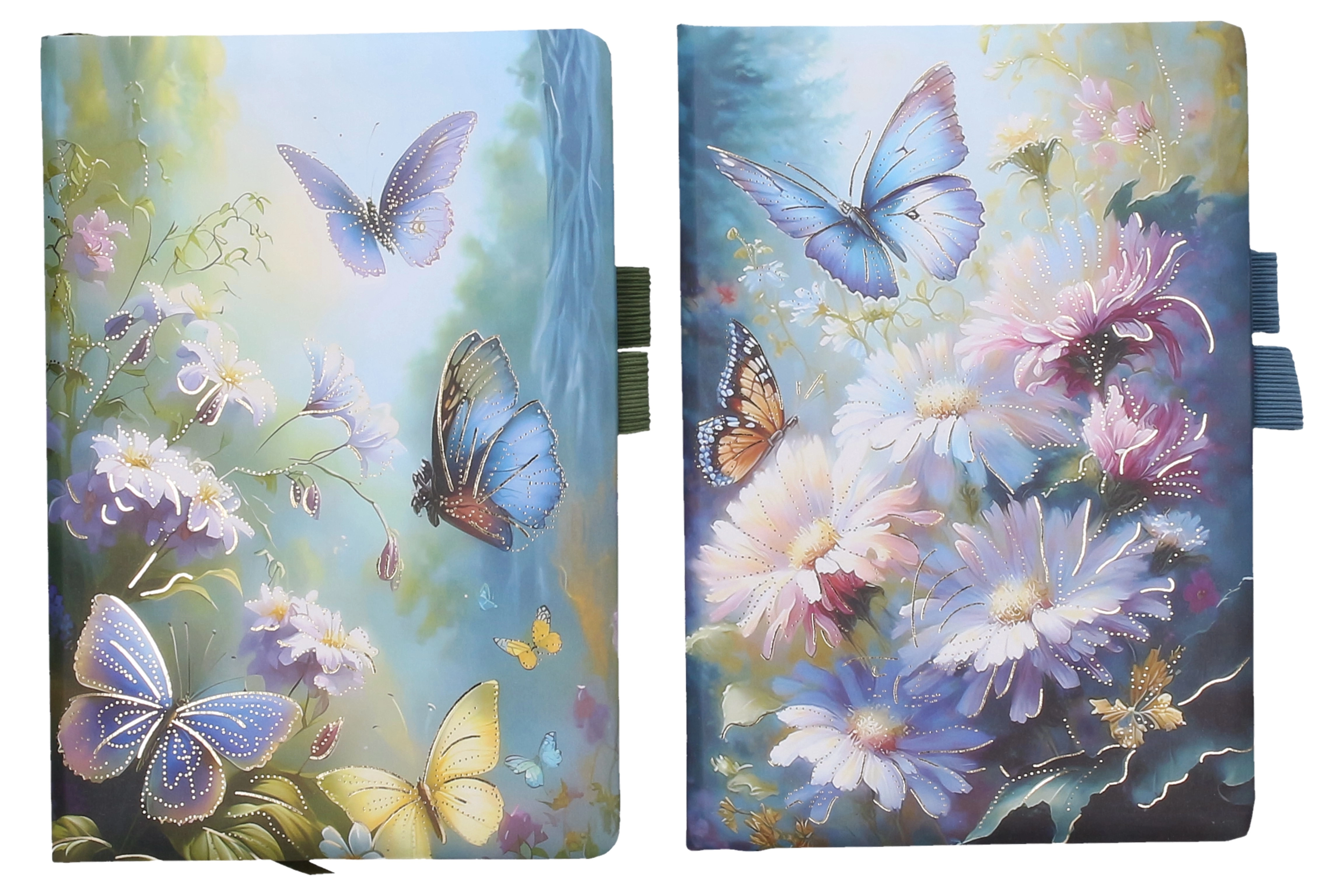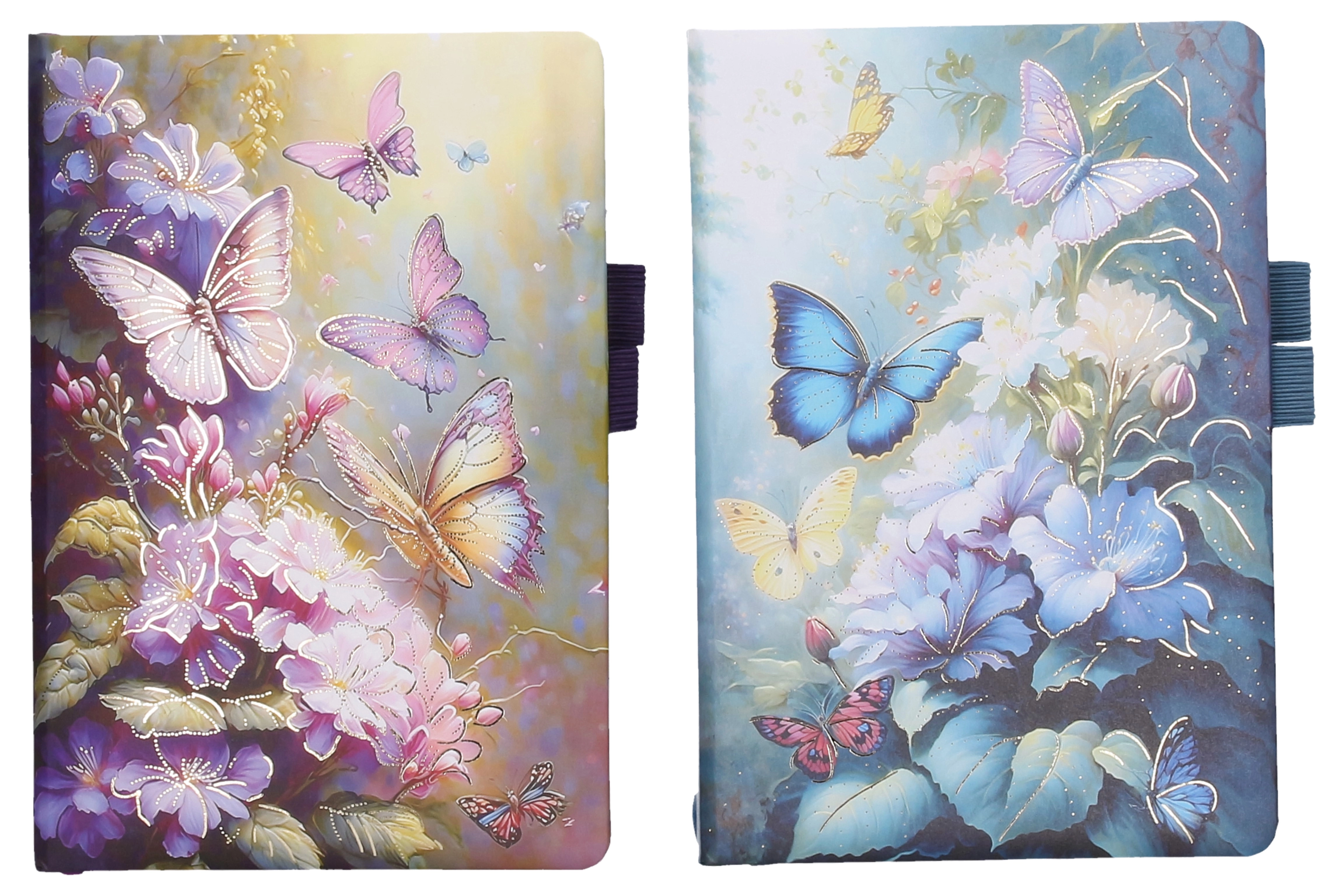 Het notitieboek is verkrijgbaar in 4 designvarianten met subtiele vlindermotieven – een geweldig cadeau-idee en een stijlvolle aanvulling op je bureau. Geschikt voor studenten, creatievelingen en iedereen die van mooi papierwaren houdt.