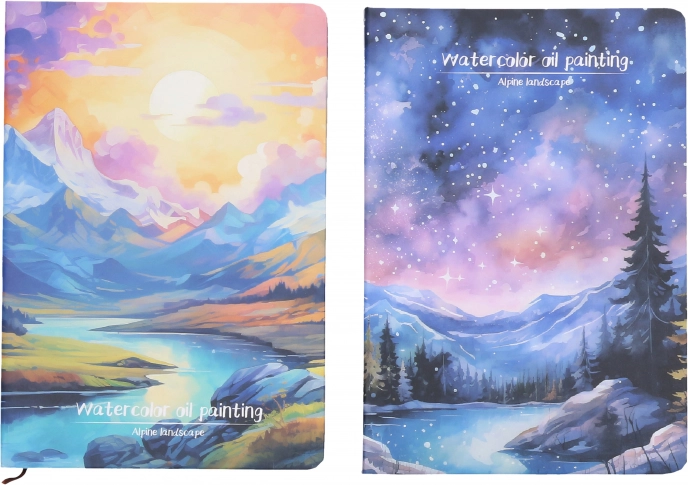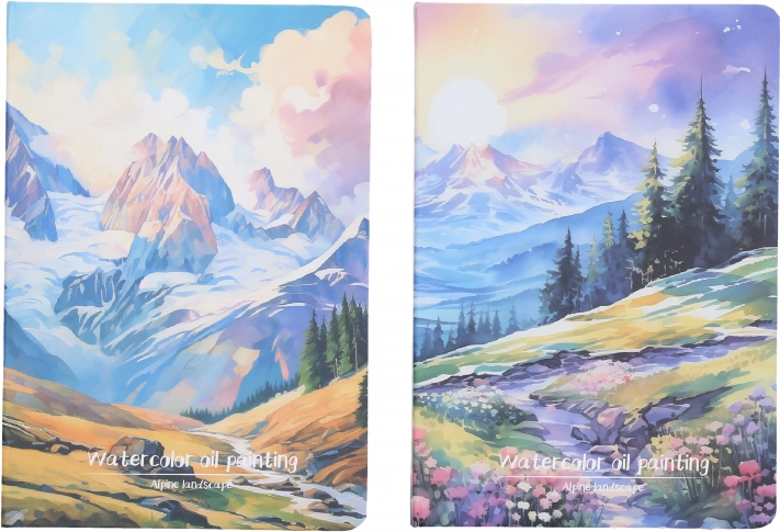 Elegant gelijnd notitieboek, ideaal voor school, werk en onderweg. Dankzij het compacte formaat van 21 × 14,5 cm past het gemakkelijk in je tas of rugzak en biedt het voldoende ruimte voor dagelijkse notities. De landschapsmotieven geven je aantekeningen een prettige uitstraling.