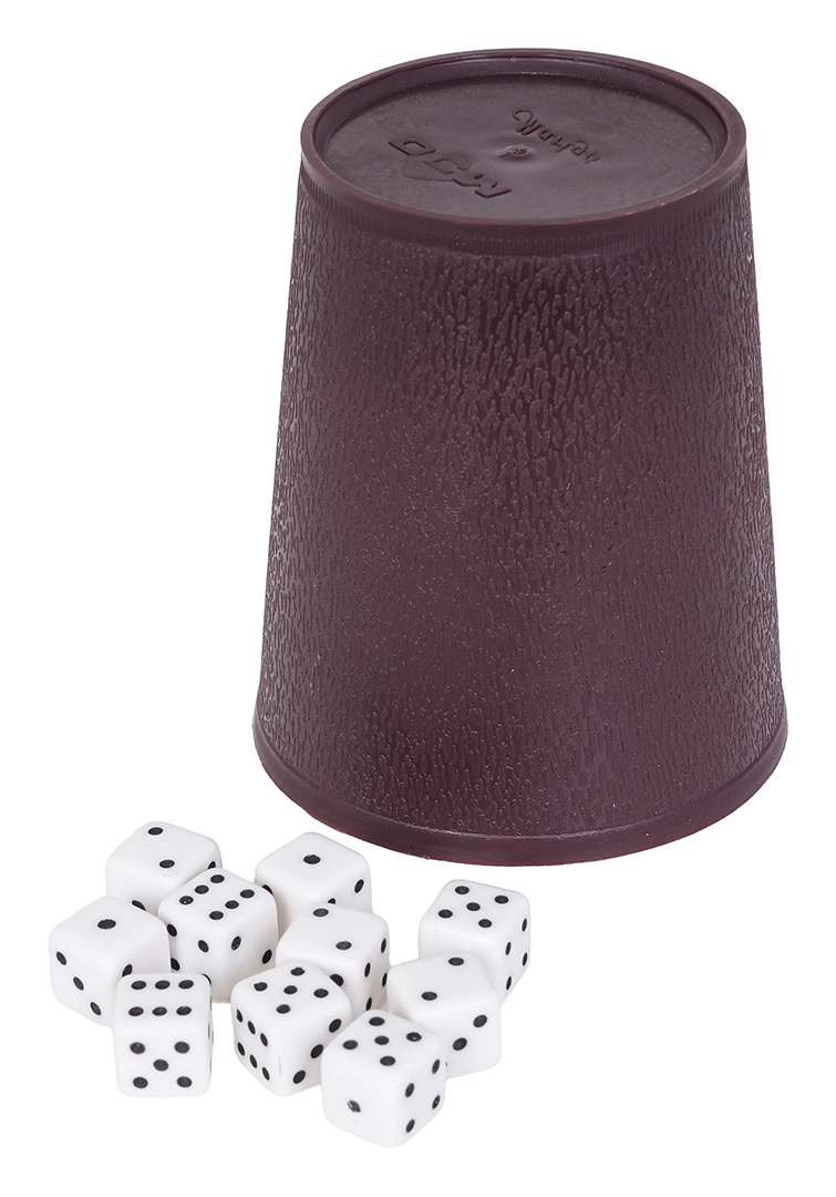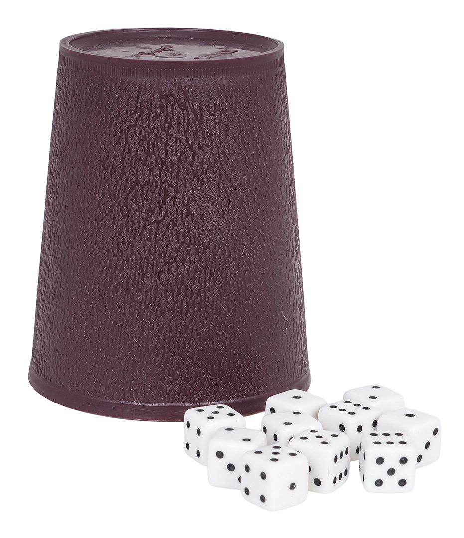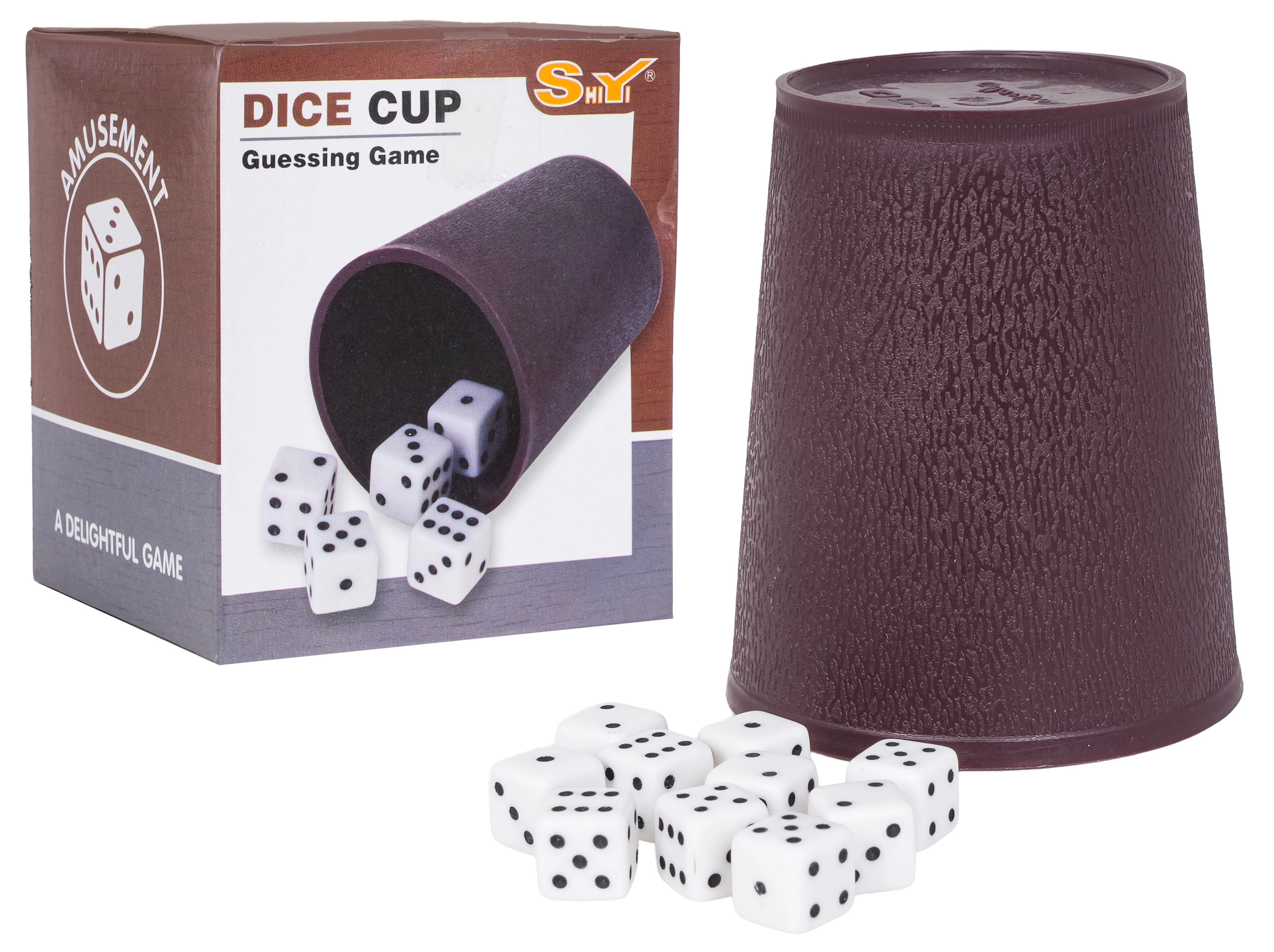 Universele dobbelset voor kinderen vanaf 3 jaar en volwassenen, met een stevige beker en 10 zeszijdige dobbelstenen. Ideaal voor feestjes en familieavonden – plezier, besluitvorming en snelle berekeningen in één. Kwalitatieve materialen, comfortabel schudden en duidelijk leesbare stippen voor eerlijk en overzichtelijk spel.