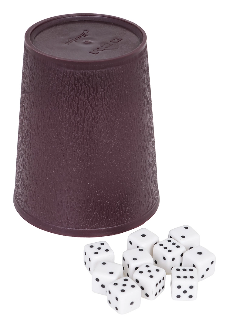 - Kunststof/composiet (beker), kunststof (dobbelstenen)
