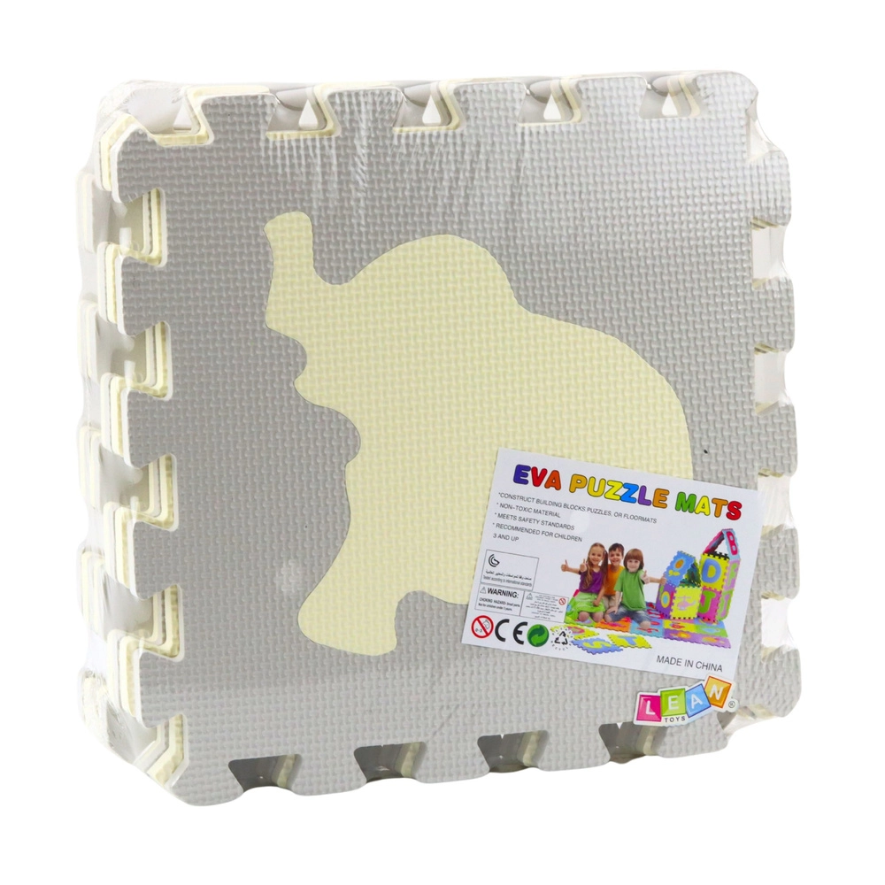 Zachte EVA-puzzelvloer met dieren, beige en grijs, 9 stuks
