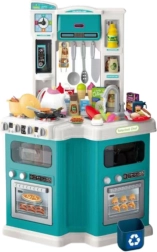 De Home Chef-keuken is ontworpen om een echte keuken zo getrouw mogelijk na te bootsen. Inclusief een openende oven, branders, planken en kastjes voor het opbergen van accessoires. Realistische licht- en geluidseffecten versterken het spel – je hoort borrelen of bakken, en het oplichtende kookvlak voegt authenticiteit toe. De kraan met watercirculatie maakt het mogelijk om echt water te schenken en leert tegelijk de basis van hygiëne.