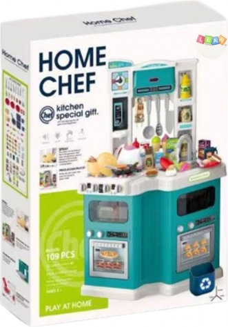 Grote kinderkeuken Home Chef met geluiden en licht, 109 accessoires