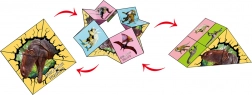 - Interactief puzzelen – soepel omklappen en draaien van de blokjes onthult verschillende dinomotieven.