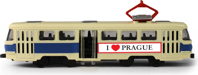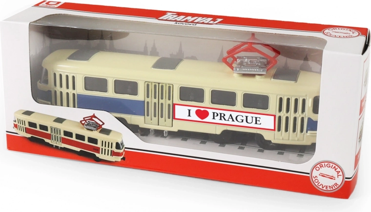 Ontdek de iconische Tsjechische T3-tram in een precisie metalen uitvoering. Dit gedetailleerde model met het opschrift PRAGUE in schaal 1:87 is ideaal voor verzamelaars, als stijlvolle decoratie of als origineel cadeau uit Praag. Dankzij de pull-back functie rijdt het model na het terugtrekken vanzelf weg en de realistische openslaande deuren versterken de authentieke uitstraling.