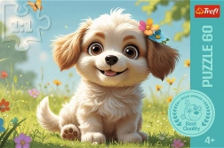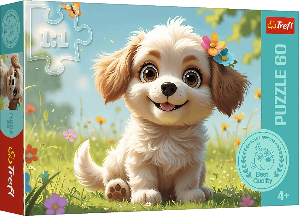 Geniet van plezier met de hoogwaardige TREFL-puzzel met een schattig puppy als motief. Dankzij de 60 stevige stukjes is hij perfect voor kinderen die leren grotere afbeeldingen te leggen, maar toch een overzichtelijk formaat nodig hebben. De voltooide afbeelding heeft een compacte afmeting van ca. 33 × 22 cm en past gemakkelijk op een tafel of legplank.