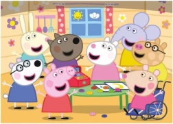 De vloerpuzzel met het thema van Peppa’s winkel zal alle kleine fans van de populaire serie blij maken. Dankzij de grote en stevige stukjes is leggen comfortabel direct op de vloer en ook geschikt voor beginnende puzzelaars. Kinderen oefenen op speelse wijze het samenstellen van het geheel uit delen, ontwikkelen hun logica en versterken hun geduld.