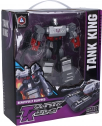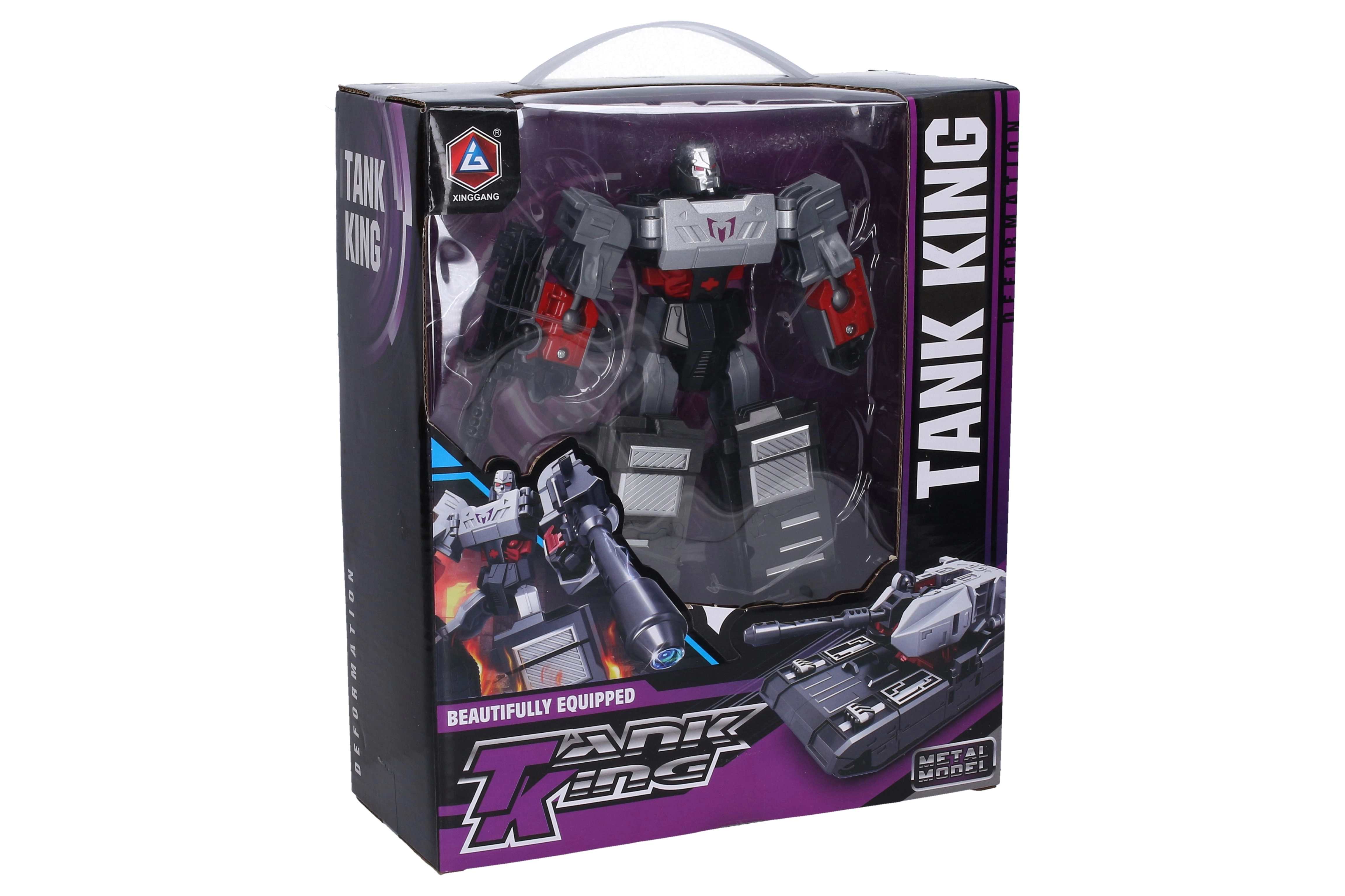 Ontdek de actierobot Tank King in een elegante zwarte kleur, die eenvoudig in een tank transformeert. Het compacte ontwerp met een lengte van ca. 19 cm combineert duurzaam metaal en kunststof voor een lange levensduur en veel speelplezier. Ideaal speelgoed voor kinderen die van robots en militaire voertuigen houden.