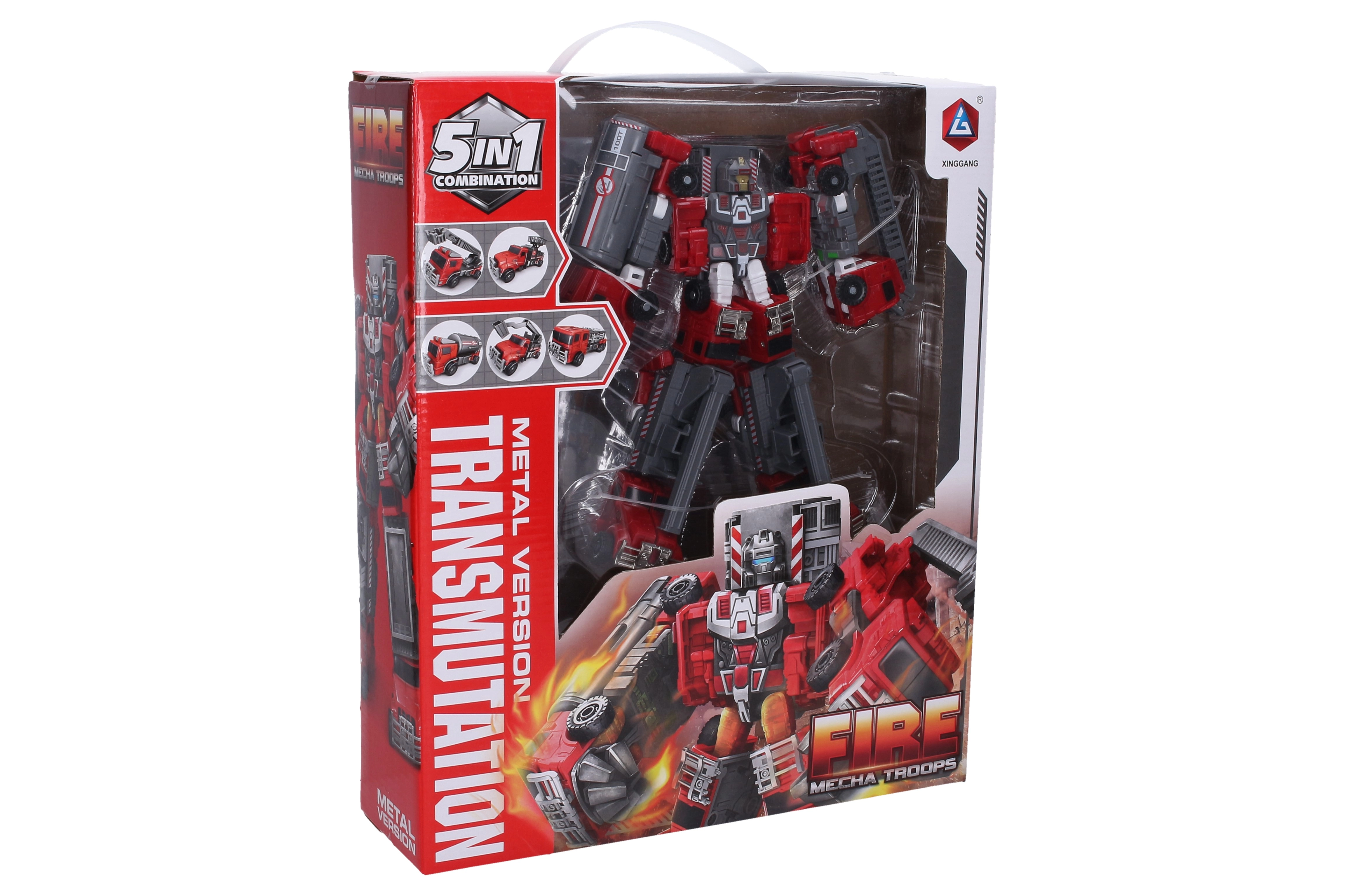 Ontdek het speelplezier met de autorobot 5-in-1, die zich transformeert van vijf kleinere robots tot één grote held. Met een hoogte van 24 cm en een brandweer-thema verrukt hij elke jonge fan van actiemodellen. Op de achterkant van de verpakking vindt u een montagehandleiding.