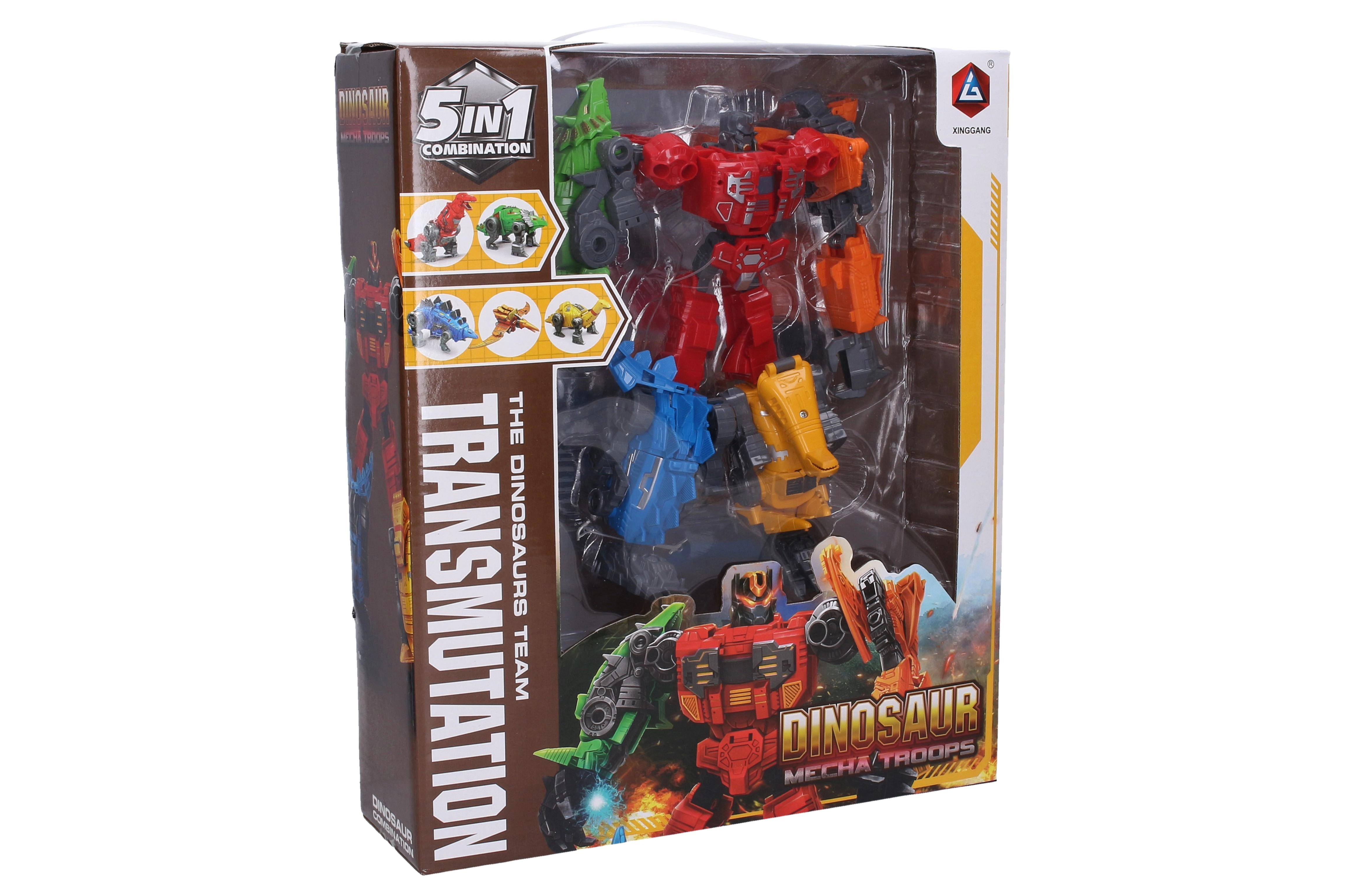 - 5-in-1 systeem – vijf kleinere robots vormen samen één grote dinorobot