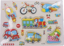 Ontdek een leuke en educatieve spelactiviteit voor de allerkleinsten: houten inlegpuzzel met het thema vervoersmiddelen met een lengte van 30 cm. Stimuleert fijne motoriek, vormherkenning en logisch denken, en brengt tegelijk plezier door spelenderwijs te leren.