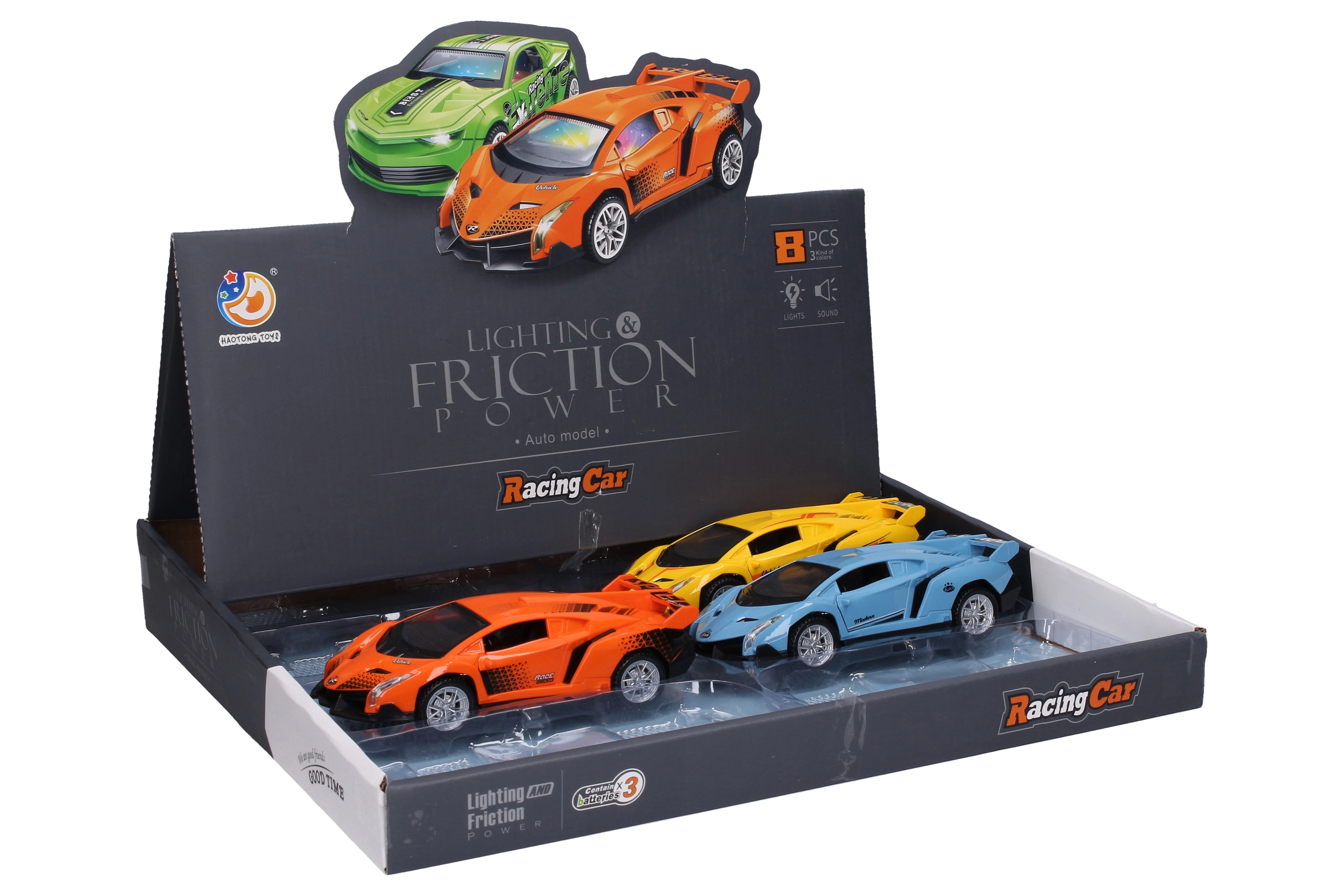 Een leuke frictieauto van 15 cm die elke kleine bestuurder zal verrassen. Biedt licht- en geluidseffecten, een muziekknop aan de onderzijde van de auto en is direct klaar voor gebruik dankzij de 3× AG13-batterijen in de verpakking. Verkrijgbaar in meerdere kleurvarianten en een praktische displaybox.