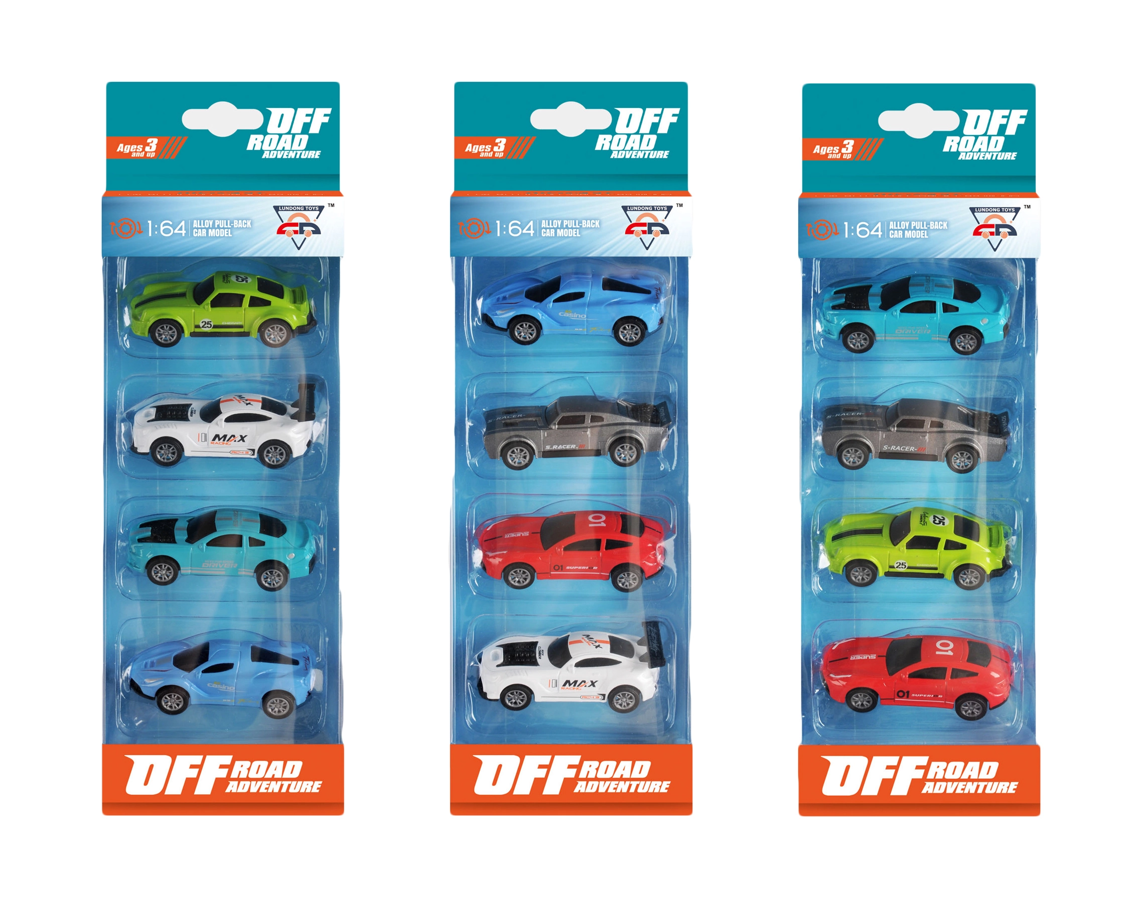 Een set van vier metalen raceautootjes die zowel kleine als grote fans van snelle wielen zal verblijden. Elk autootje is 7,5 cm lang, heeft vrije wielen voor een soepele rit en is gemaakt van duurzaam metaal. De verpakking bevat 4 stuks in verschillende ontwerpvarianten.