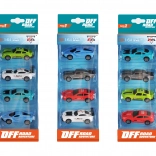 Ontdek deze set compacte metalen raceautootjes, ideaal voor kinderhanden en races thuis. Dankzij de robuuste metalen carrosserie en de vrije wielen rijden ze soepel en leuk op verschillende ondergronden. De diverse kleurvarianten en prints brengen afwisseling in het spel en stimuleren de fantasie.