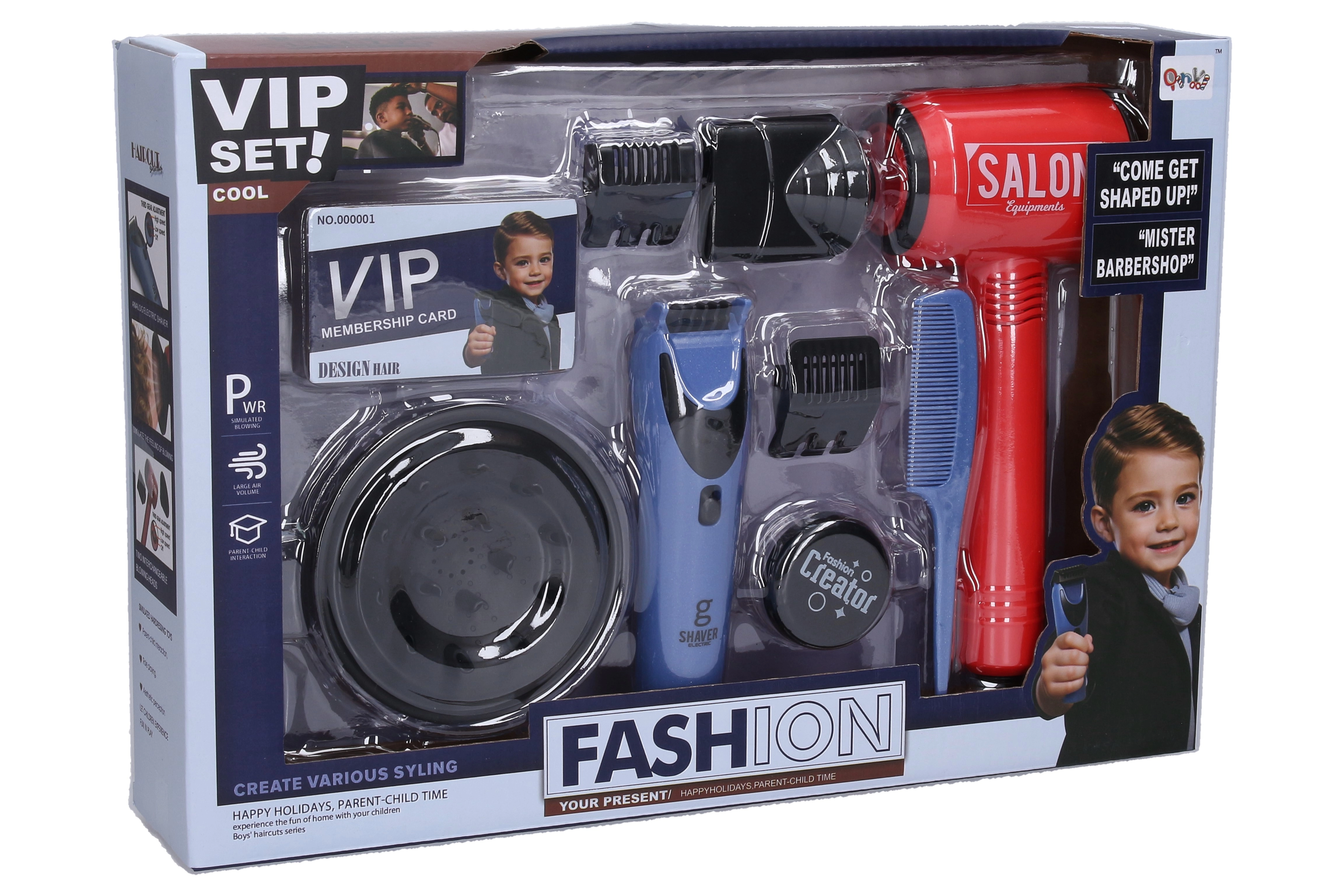 Een leuke cosmeticaset voor kleine kappers met een werkende föhn, tondeuse, kam, opzetstukken en een salonlidmaatschapspas. Ideaal om kapsalon te spelen en de creativiteit te stimuleren.