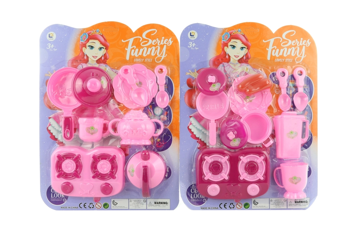 Een leuke kunststof serviesset voor kleine koks met alles voor rollenspel in de keuken – kooktoestel, pan, koekenpan en bordjes. Ideaal om de verbeelding en motorische vaardigheden te stimuleren, geschikt vanaf 3 jaar.