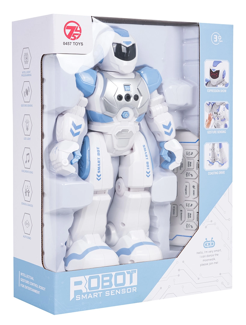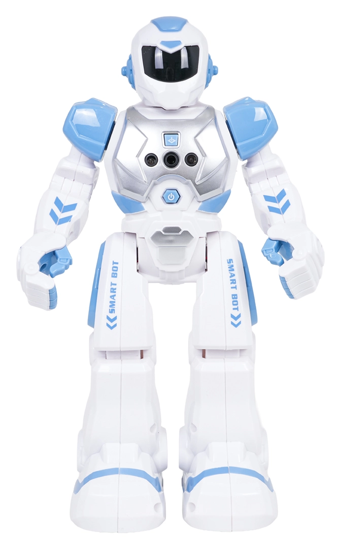 De leuke en interactieve SMART-BOT robot voor kinderen vanaf 3 jaar zorgt voor uren slimme speelpret. Hij kan dansen, 360° ronddraaien, vooruit/achteruit lopen, links/rechts draaien, armen bewegen en reageert op sensorische prikkels. Bediening via een 2,4 GHz afstandsbediening, met bewegingsprogrammering, demomodus, lichtgevende ogen en vrolijke melodieën en liedjes. Oplaadbare 3,7 V batterij inbegrepen.