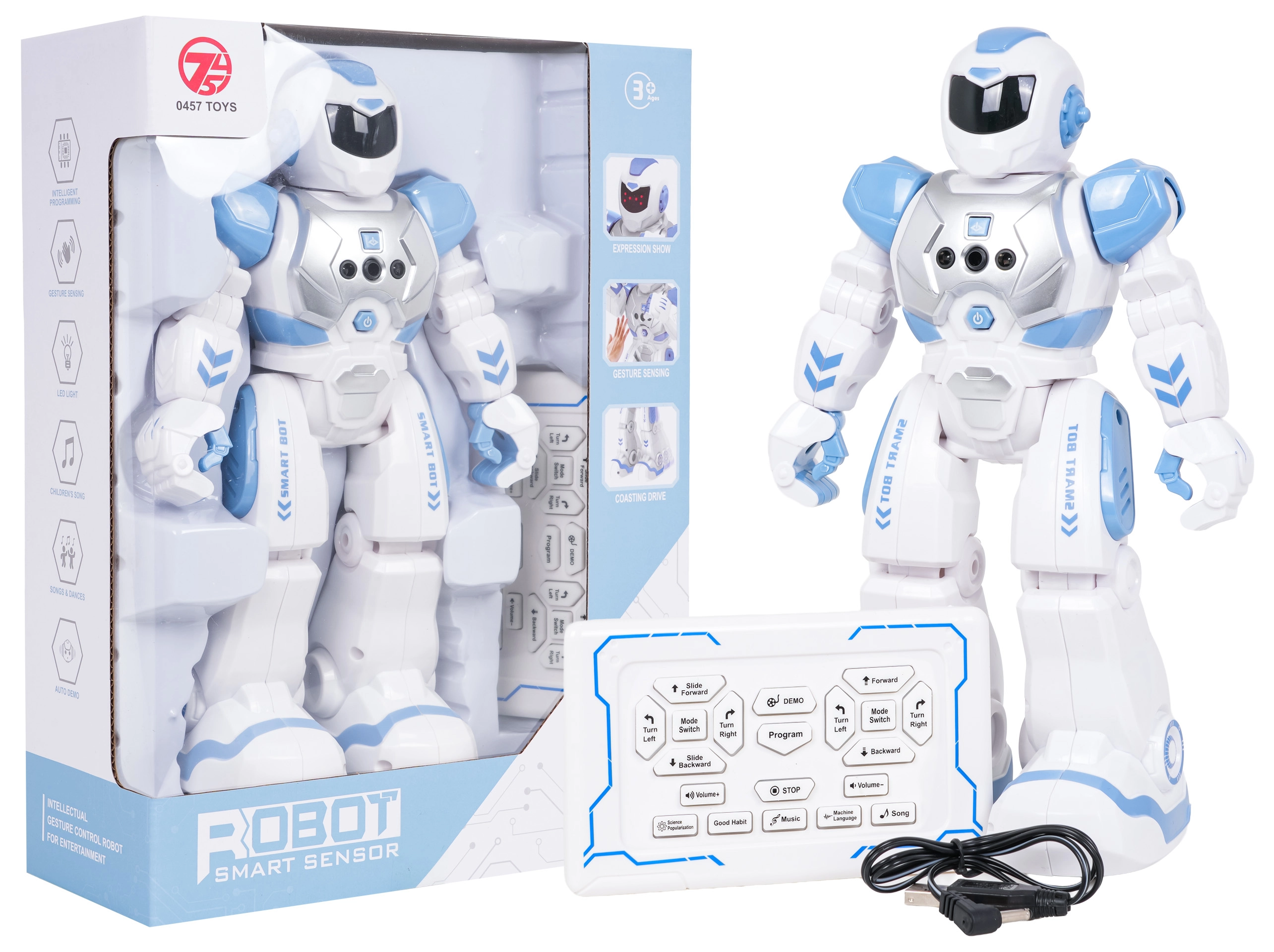 SMART-BOT is een betrouwbare metgezel voor nieuwsgierige kinderen. Dankzij de stabiele constructie van hoogwaardige kunststof kan hij lopen, zijwaarts glijden, 360° draaien en op muziek dansen. Verlichte ogen, geluiden en liedjes ondersteunen de verbeelding en het ritmegevoel, terwijl reacties op prikkels en eenvoudige tips over goede gewoonten motiveren tot positief gedrag.