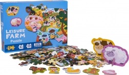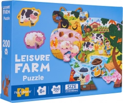 Ontdek de magie van de boerderij tijdens het leggen van deze puzzel van 200 stukjes, die na voltooiing een originele afbeelding in de vorm van een koe met vrolijke dieren vormt. De twee speciale stukjes met standaards (schaapje en koetje) kun je los neerzetten, bijvoorbeeld op een plank of tafel. De hoogwaardige, kleurrijke afwerking zal zowel kinderen als ouders bekoren.