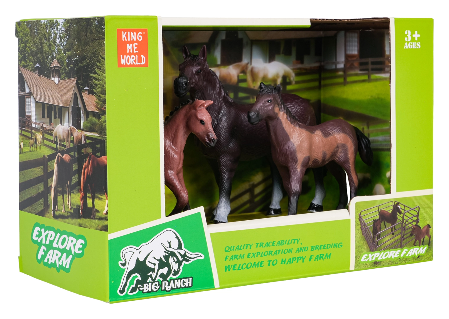 Ontdek de magie van de paardenwereld met een set van drie gedetailleerde figuren. Ze zijn gemaakt van veilige materialen, liggen prettig in kinderhandjes en stimuleren fantasie en fijne motoriek. Ideaal als cadeau voor kinderen vanaf 3 jaar.