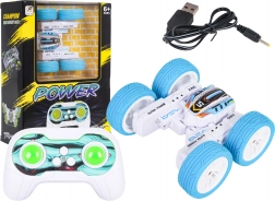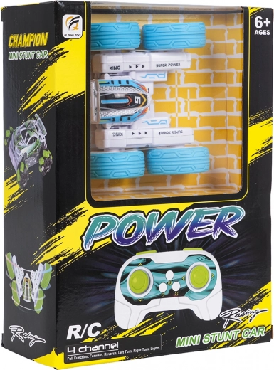 De RC stuntauto POWER STUNT blinkt uit in wendbaarheid en spectaculaire trucs. Dankzij de grote rubberen wielen kan hij oneffenheden aan, rijdt hij vooruit en achteruit, rechts en links, zijwaarts en kan hij 360° draaien. De dubbelzijdige constructie maakt doorgaan mogelijk, zelfs na het omvallen. Kleurrijke LED-verlichting zorgt voor een geweldige show tijdens het rijden.