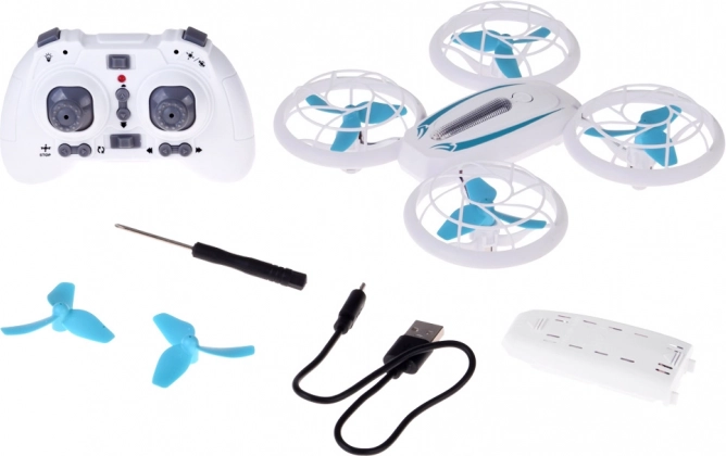 Ontdek het plezier met een compacte LED-drone die eenvoudige bediening combineert met een veilige constructie. Dankzij de rotorbescherming is hij geschikt voor vliegen binnenshuis, terwijl vluchtstabilisatie en de Headless-modus het piloten makkelijker maken. Zichtbare LED-diodes voor en achter verbeteren het richtingsgevoel en maken vliegen aantrekkelijk, ook bij schemering.