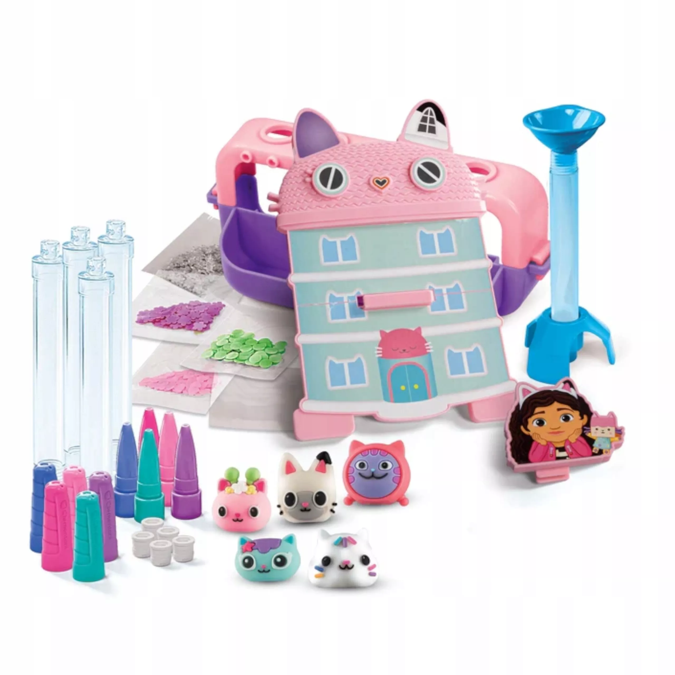Met deze leuke “pennenfabriek” ontwerpen en versieren kinderen hun schrijfwaren helemaal zoals zij willen. Het werkstation is eenvoudig te gebruiken, maakt het doseren van versieringen mogelijk en laat pennen afwerken met glitters, confetti of stickers uit de geliefde wereld van GABBY’S DOLLHOUSE.