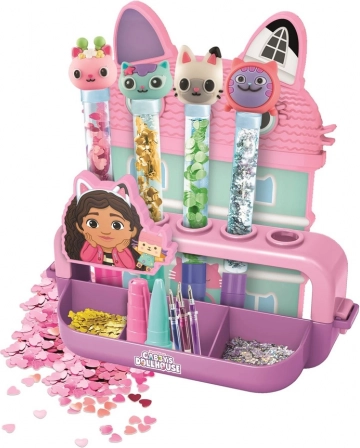 Ontdek de leuke “pennenfabriek” geïnspireerd op de wereld van GABBY’S DOLLHOUSE. Kinderen kunnen hun eigen pennen ontwerpen en versieren, kleuren en glitters combineren en schattige kattenmotieven toevoegen. De set is ideaal voor jonge makers die van creatieve projecten houden en hun schoolspullen naar wens willen personaliseren.