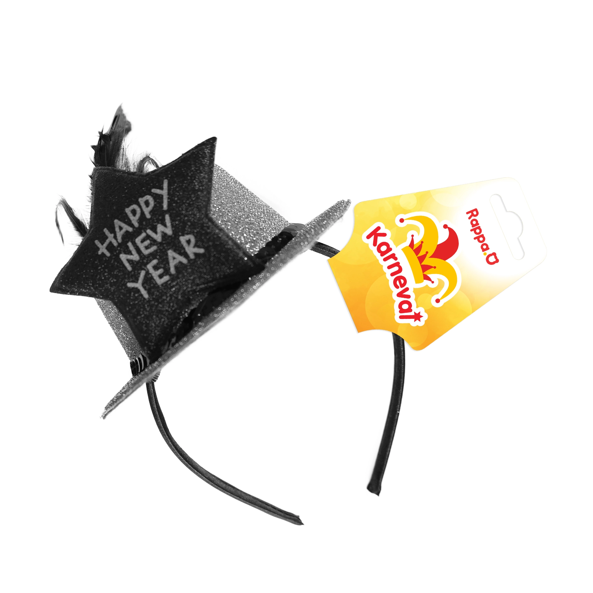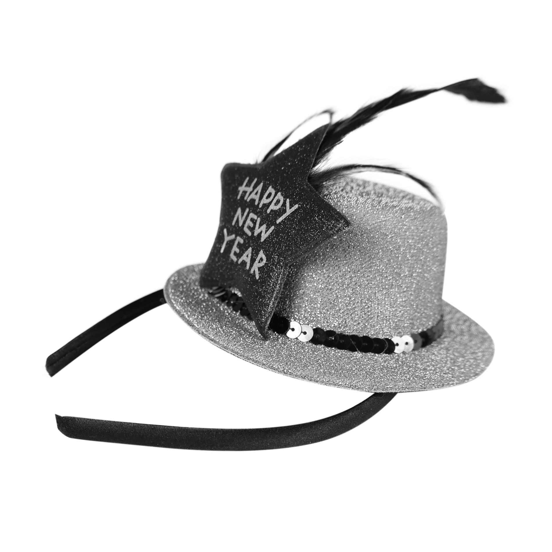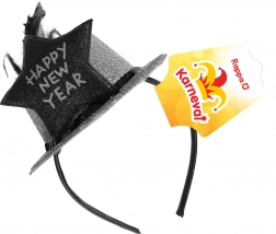 Stijlvolle haarband met een minihoedje in goudkleur en de tekst HAPPY NEW YEAR. Perfect accessoire voor een oud-en-nieuwfeest en elke party. Het lichte hoedje is comfortabel bevestigd met elastiekjes, waardoor het goed blijft zitten en niet stoort tijdens het dansen.