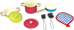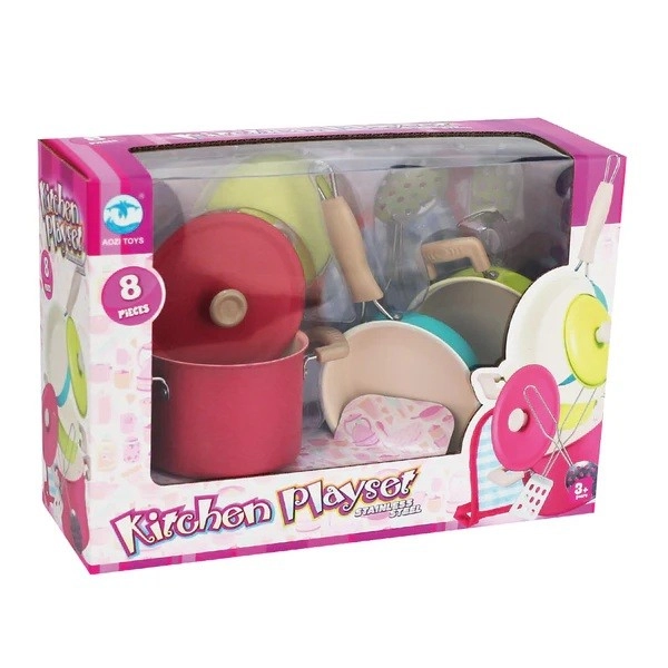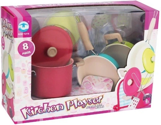 Realistische metalen pannenset voor kinderen van roestvrij staal brengt plezier als in een echte keuken. Bevat 8 onderdelen inclusief pannen, koekenpan en accessoires. Stimuleert creativiteit, fijne motoriek en veilig rollenspel in de kinderkeuken.