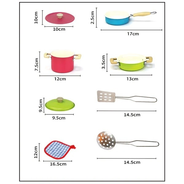 Koken naspelen was nog nooit zo realistisch. De metalen pannenset is gemaakt van duurzaam roestvrij staal, waardoor hij eruitziet en aanvoelt als echt kookgerei uit de volwassen keuken. Kinderen kunnen “maaltijden” bereiden voor poppen of een thuisrestaurant openen en alledaagse vaardigheden oefenen in een veilige omgeving.