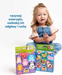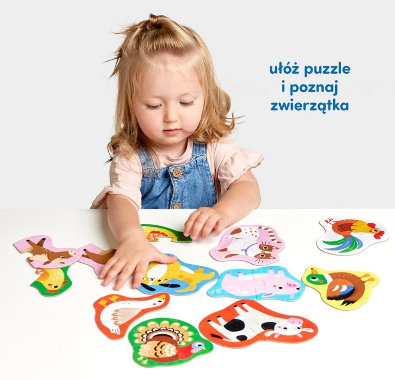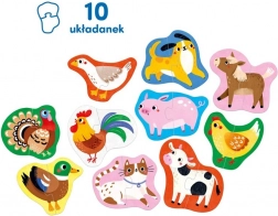 Vrolijke boerderijdieren nodigen kinderen uit tot uren creatief spel. Het koppelen van tweetjes is ideaal als eerste stap in de wereld van puzzels en helpt geduld en concentratie te trainen. Het spel bevordert op een natuurlijke manier de taal – kinderen benoemen dieren, kleuren en details op de afbeeldingen en leren ze onderscheiden.