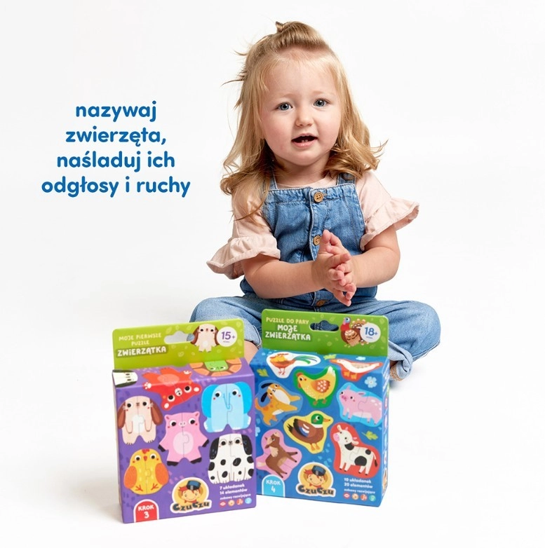 Ontdek de eerste puzzel voor de allerkleinsten: de tweedelige “Puzzel per paar – mijn diertjes”. Kinderen ontwikkelen tijdens het spel hun waarneming, fijne motoriek en ruimtelijk inzicht. Het nadoen van geluiden en het benoemen van dieren stimuleert de spraak en breidt de woordenschat uit – en het is bovendien ontzettend leuk!